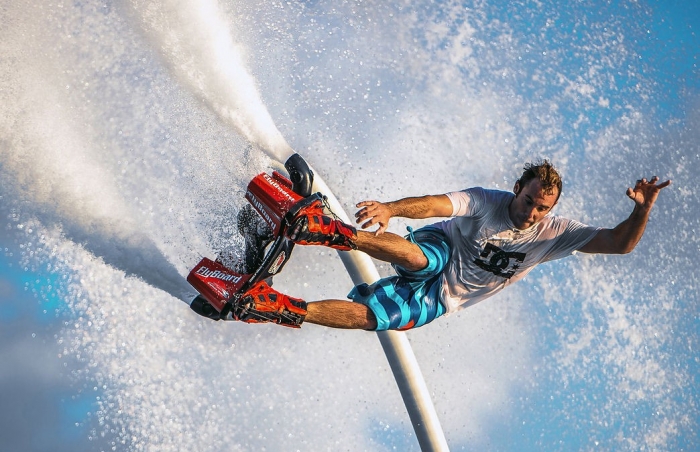If you like extreme water sports, flyboad is for you !! It will allow you to fly in the air above the crystalline water of ibiza. Beginners get advice from an instructor to fly easily.