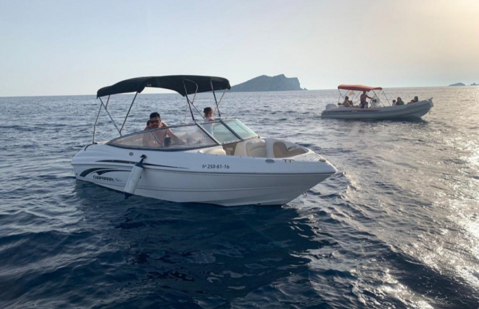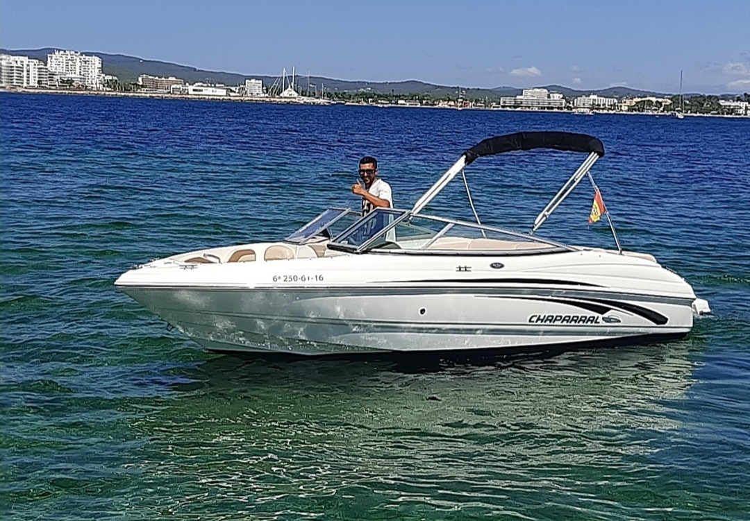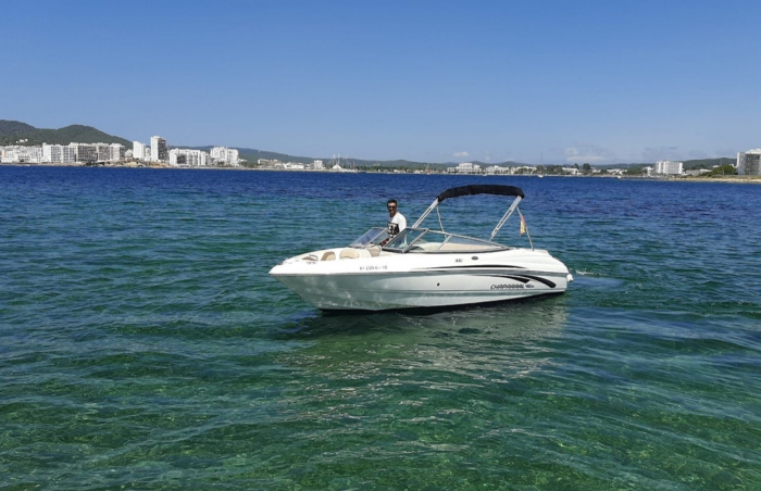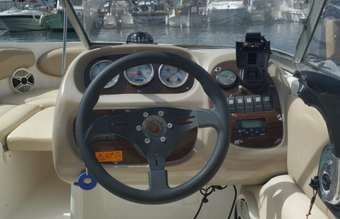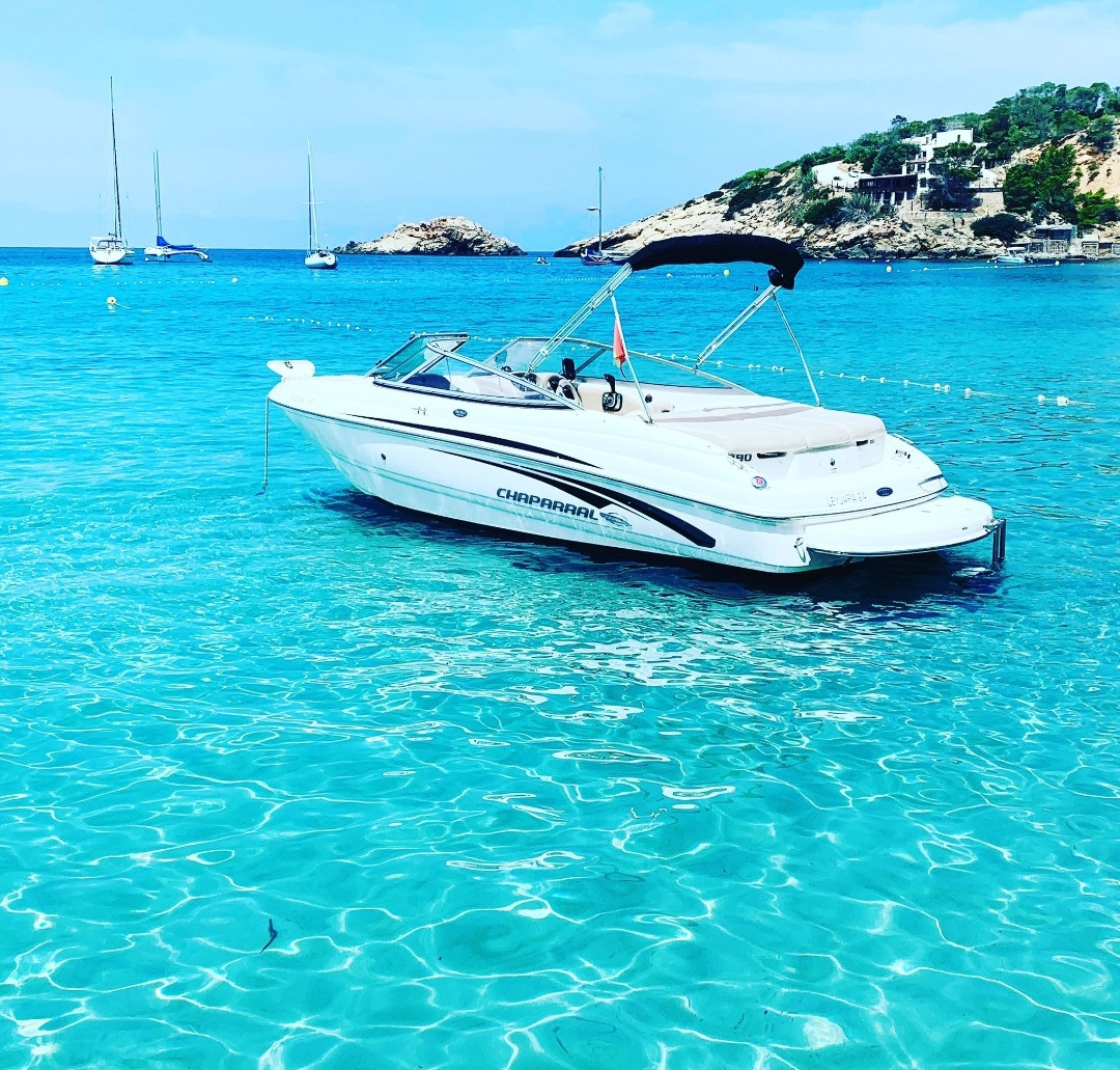 | 5,99 Mts | 2,36 Mts | 225 CV | 5 pax + 1 skipper | 30 L/H | 1200 € | San Antonio |