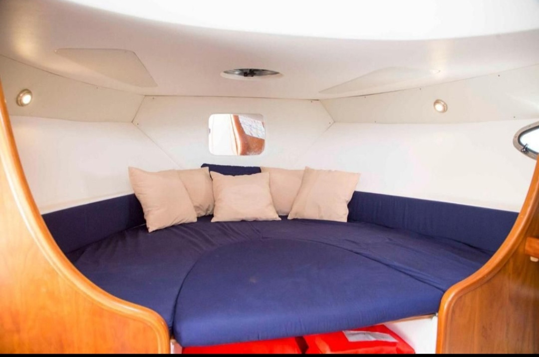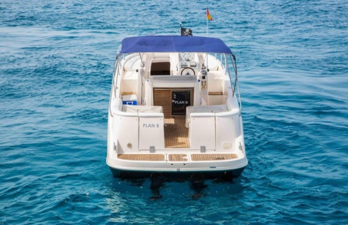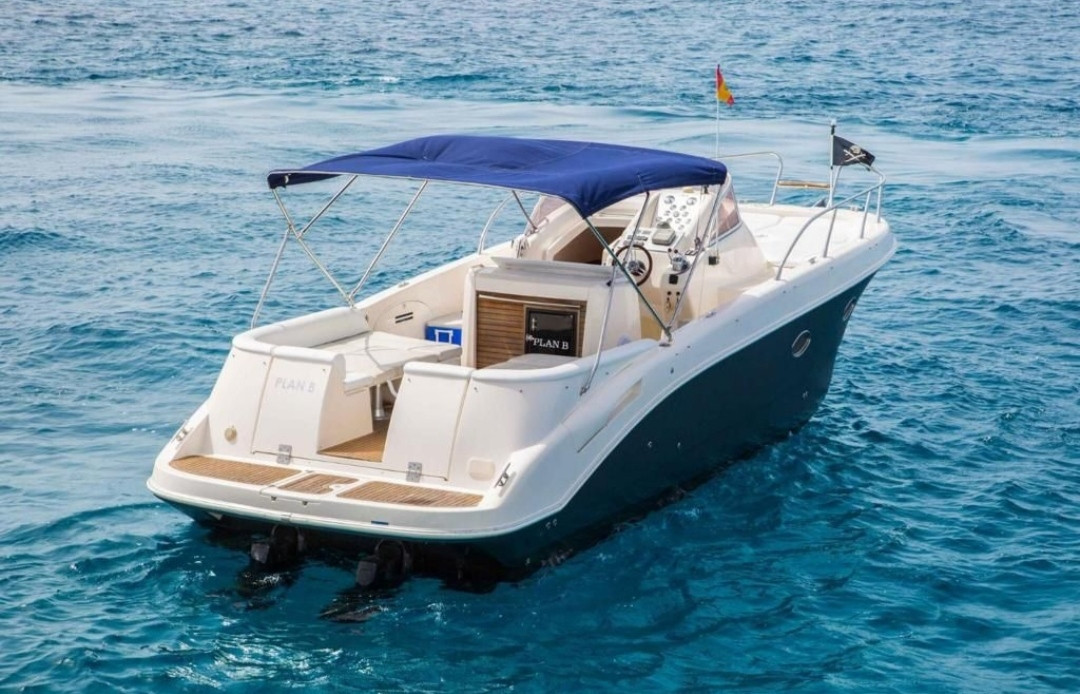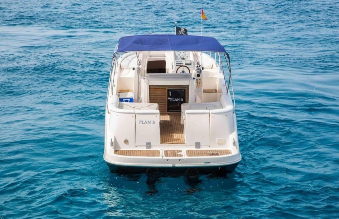 | 9,04 Mts | 3 Mts | 2 x 180 CV VOLVO PENTA | 9 pax + skipper | 30 L/H | San Antonio | Mandatory |