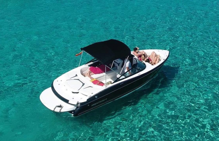 The Monterrey 224fs is a bowrider boat, known for its comfort, will suit perfectly for a summer day with friends or family. Navigate accross the Pitusas Islands, discovering hidden corners for an unforgettable experience.