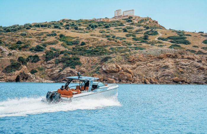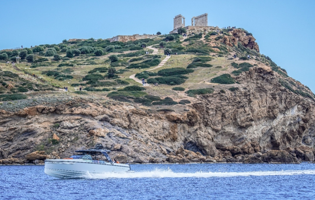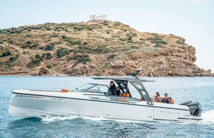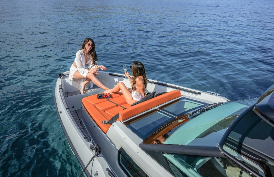 Saxor 320 GTO. Boat awarded in 2022 to the boat with the best navigation under 40 feet, the capacity of this boat is 8 pax + captain, it has 2 225 hp engines which makes the boat very stable and perfect for sailing.