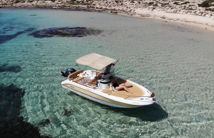 The sessa key largo 20 is a big boat plenty of space with a larg beautiful solarium to enjoy and relax, you have a bluetooth sistem to enjoy your own music during your trip. it has a 115 horsepower yamaha engine with an excellent maneuverability.
