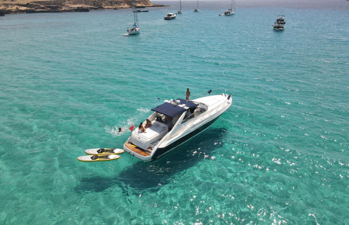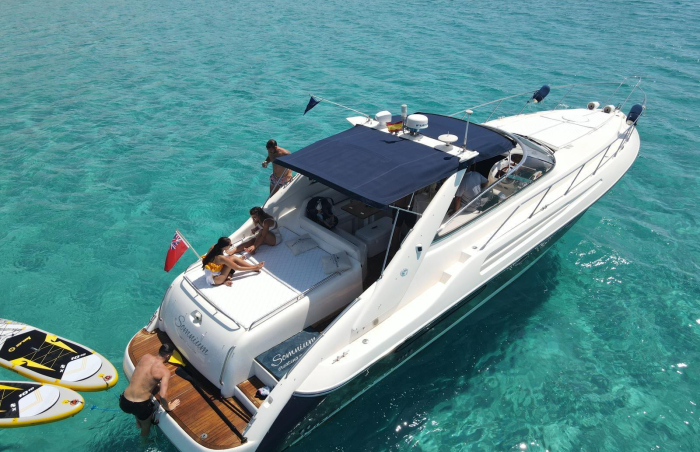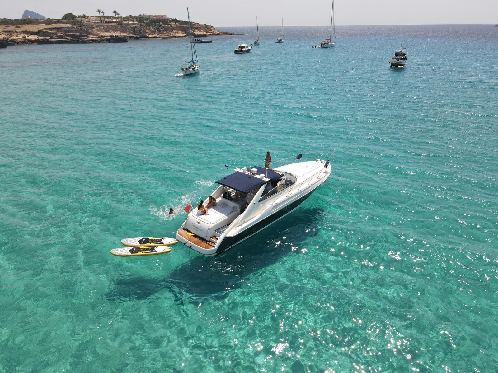 Are you ready to experience the thrill of sailing through the stunning waters of San Antonio Bay? Look no further than the Sunseeker Camargue 50FT. Our luxury yacht offers you the ultimate way to explore the hidden gems of this breathtaking location. With half-day or full-day options available, our expert crew will guide you to the best coves and beaches. Dive into the crystal-clear waters and bask in the sun on the finest beaches the island has to offer. Our top-notch amenities ensure an unforgettable experience: sunbeds and a comfortable seating area, fully equipped kitchen, air conditioning, and a sound system to play your favorite tunes. Relax as our crew takes care of everything, including a personalized catering service, so all you have to do is sit back and enjoy. Join us aboard the Sunseeker Camargue 50FT for an unrivaled adventure in San Antonio Bay. Book your trip today and let us show you the very best this stunning area has to offer.