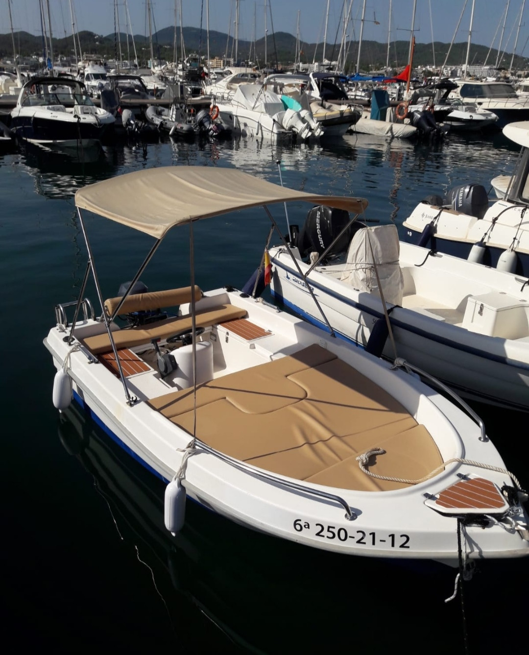 RENT A BOAT WITHOUT LICENCE IN IBIZA (5 PAX) San Antonio Bay