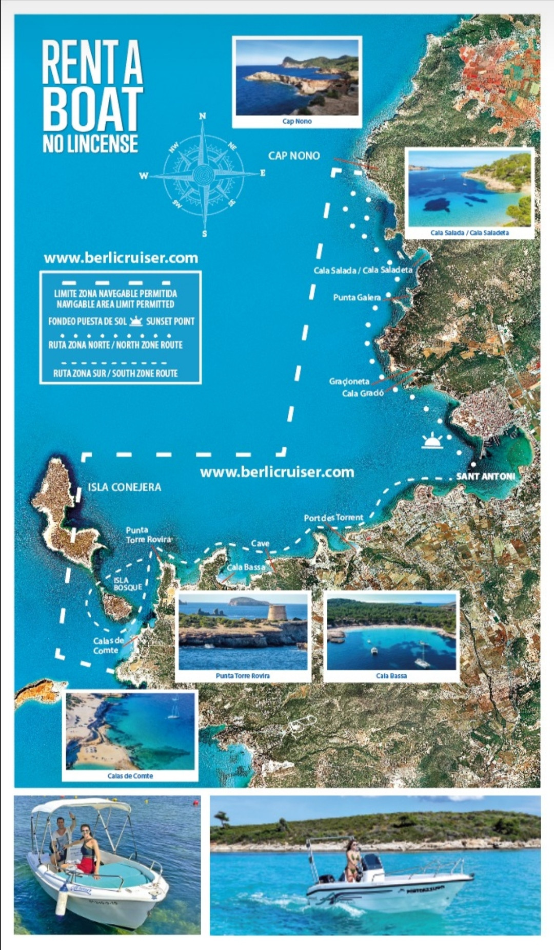 | 4 Mts | 15 HP | 5 Pax | No Required | 100 euros | San Antonio Bay |